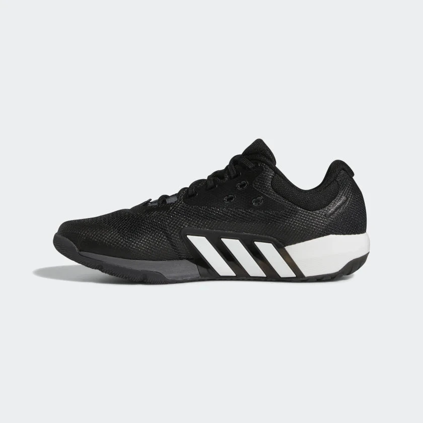 Step into your confidence. Designed using input from athletes across the globe, these adidas Dropset Trainers are made to tackle tough workouts. A stiff heel adds stability as you lift and a soft forefoot provides flexibility during high-intensity cardio. And because the gym is no place for distractions, the wide fit and a dual-density midsole keep feet comfortable so you can stay focused. Made with a series of recycled materials, this upper features at least 50% recycled content. This product represents just one of our solutions to help end plastic waste.