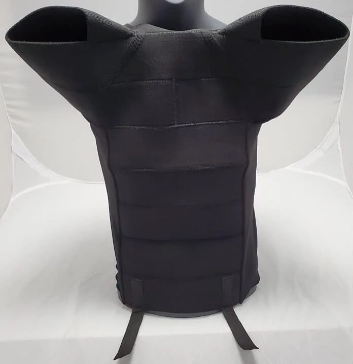 - A chest plate that remains flat (no fold over).